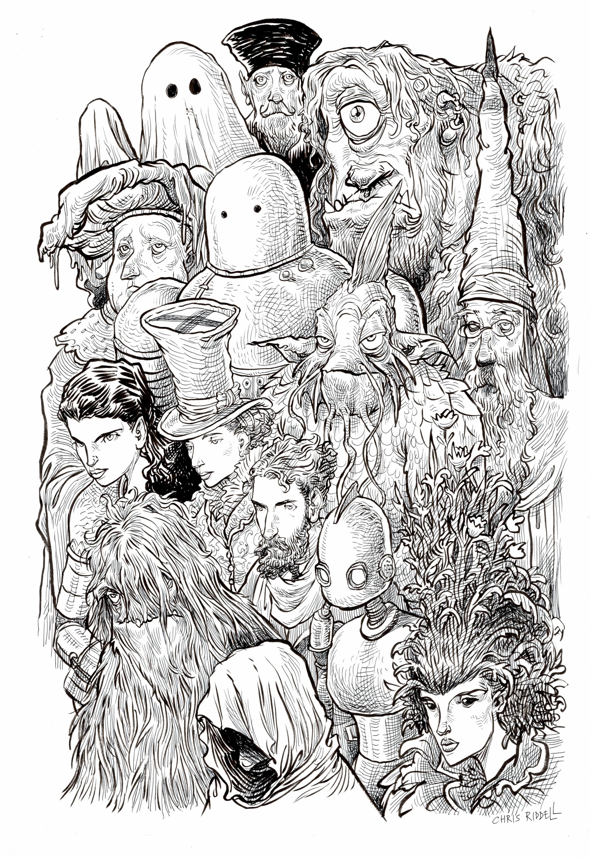 A3 pen and ink on paper original drawing with a signed letter of authentication.